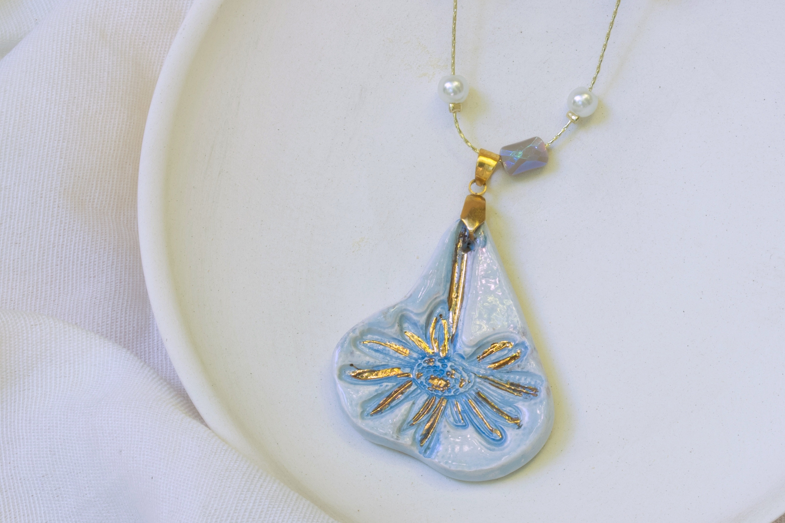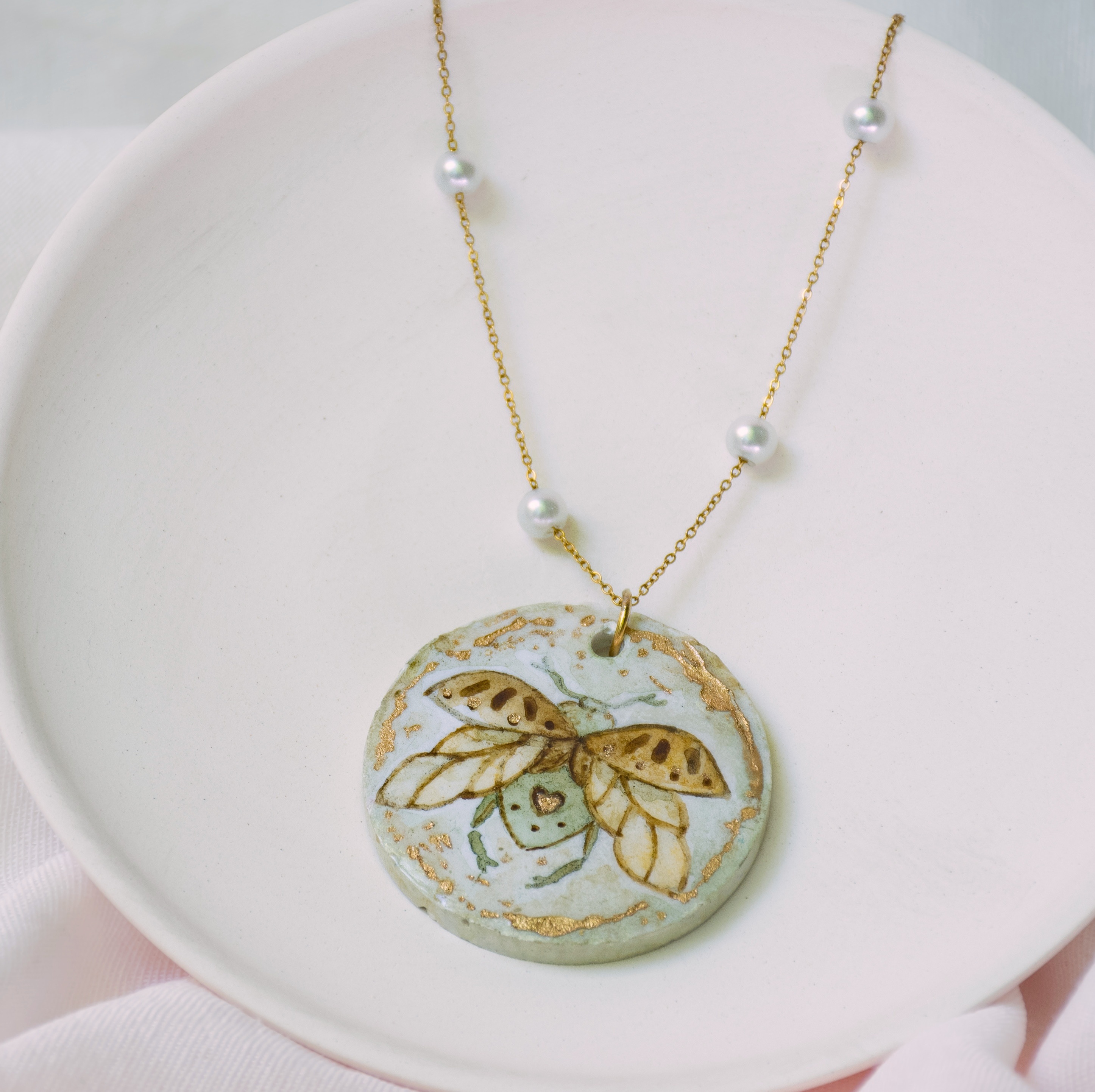 گردنبند سرامیکی دستساز لاستر طلا