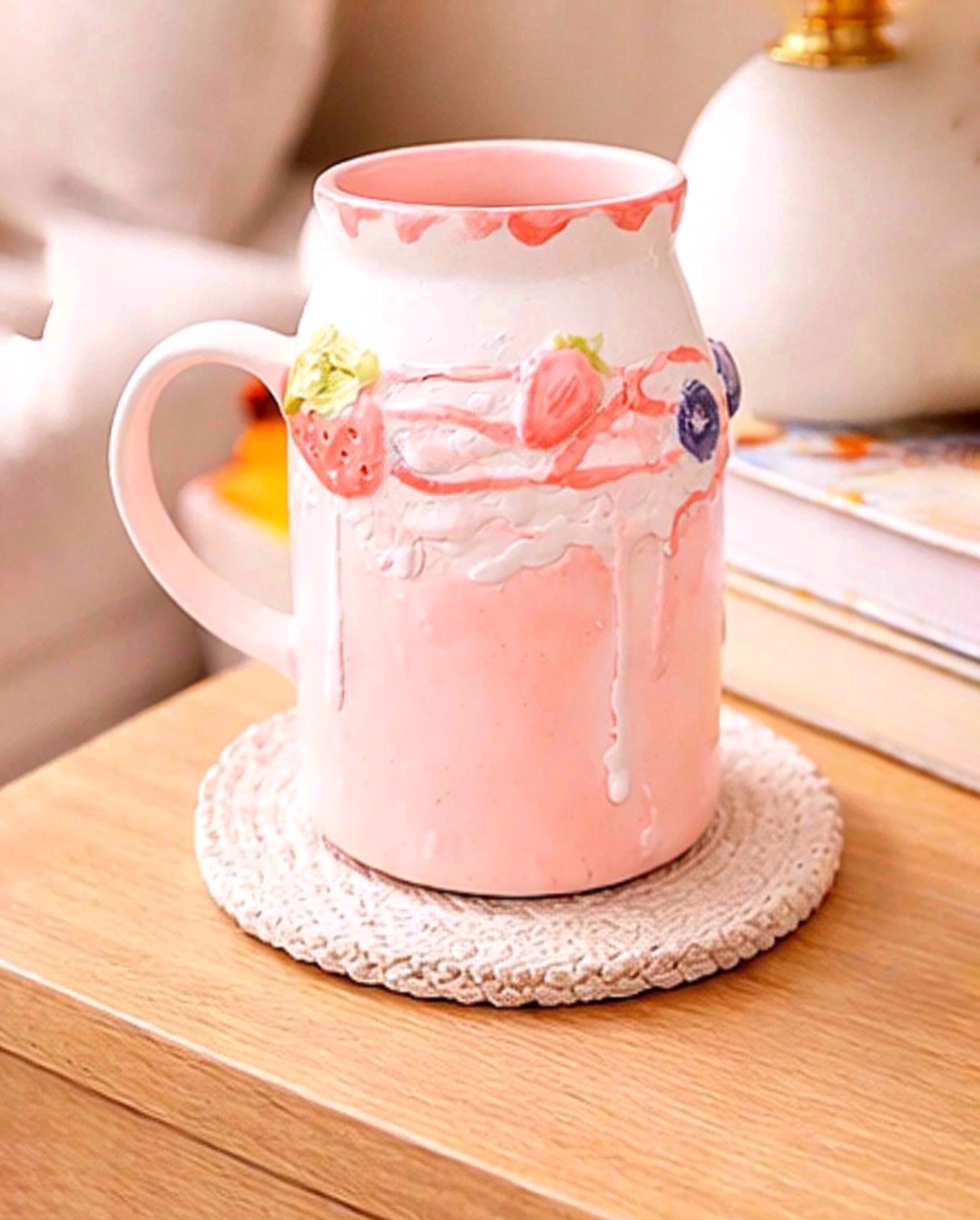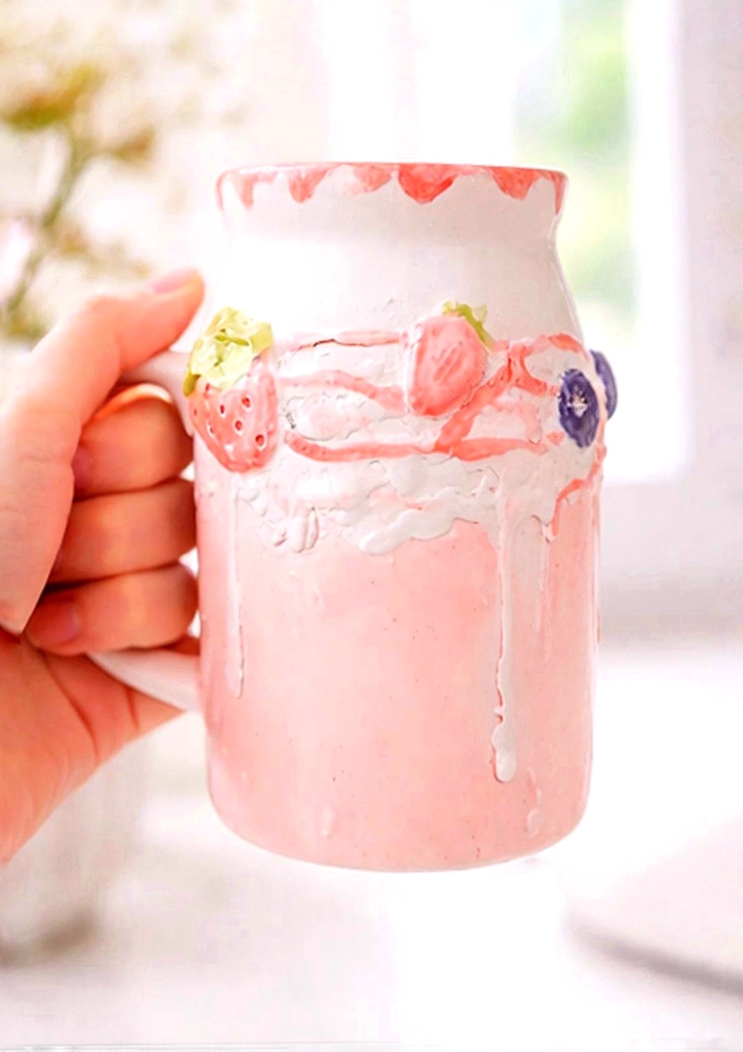 ماگ طرح شیک توت فرنگی دستساز