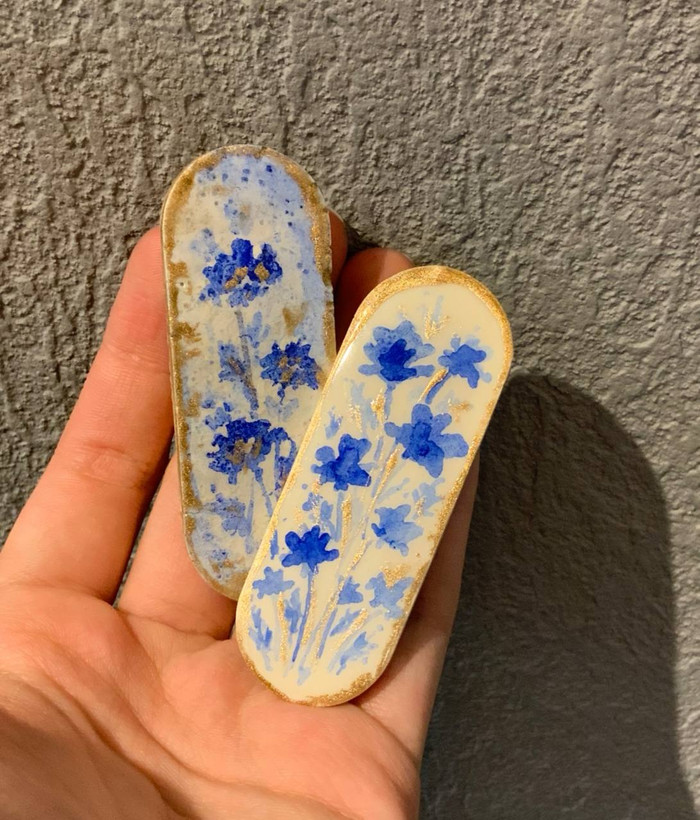 گلسر دستساز جفت سرامیکی گل های آبی